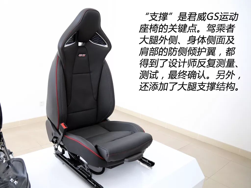 “支撑”是这款座椅“强有力”的关键点,像其他运动座椅一样,君威GS的座椅,在驾乘者大腿外侧、身体侧面及肩部,都设计了防侧倾护翼,在护翼角度和厚度方面,设计师经过多种数据测量和实际实验后,得出了合适的“合理范围”的结果。另外,座椅还设计了大腿支撑结构,可调节行程为60mm共12挡。