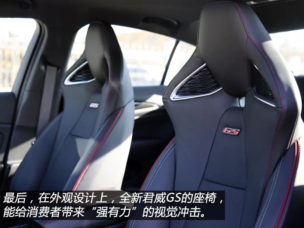 2017款别克君威GS是车系当中运动风格十足的一款车型,不光车身外观与普通版君威差异较大,更重要的是,车内主副驾驶配备的两张兼顾舒适性与功能性运动型座椅。这款运动座椅,首先在外观颜值方面可以说基本达到了“标准”状态,其次在功能上,除了具备“标准”运动座椅包裹性较强的特性之外,同时,还增加了日常驾车时所需要的一些功能性,具体细节咱们接着往下聊。