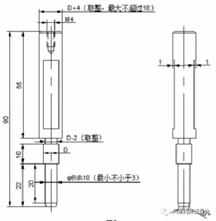 斜度4度,锥形销结构推荐按图4设计。