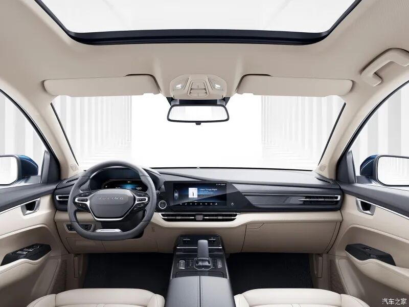 内饰整体造型多采用直线进行勾勒,并辅以少量曲线点缀。米色与黑色相搭配让车内氛围更加偏向温馨居家的感觉。此外,中控台采用多层设计,空调出风口造型更加扁平,丰富了车内的层次感。新车采用了两辐式多功能方向盘,搭配全液晶仪表、悬浮式中央多媒体触控屏、电子挡把、全景天窗、PM2.5级别滤芯及负离子发生器,增添了车内的科技感。值得一提的是,新车内饰用料也较为讲究,中控台、门板等处采用了搪塑+亲肤皮革面料相搭配,并且车内多处还使用了环保材质。