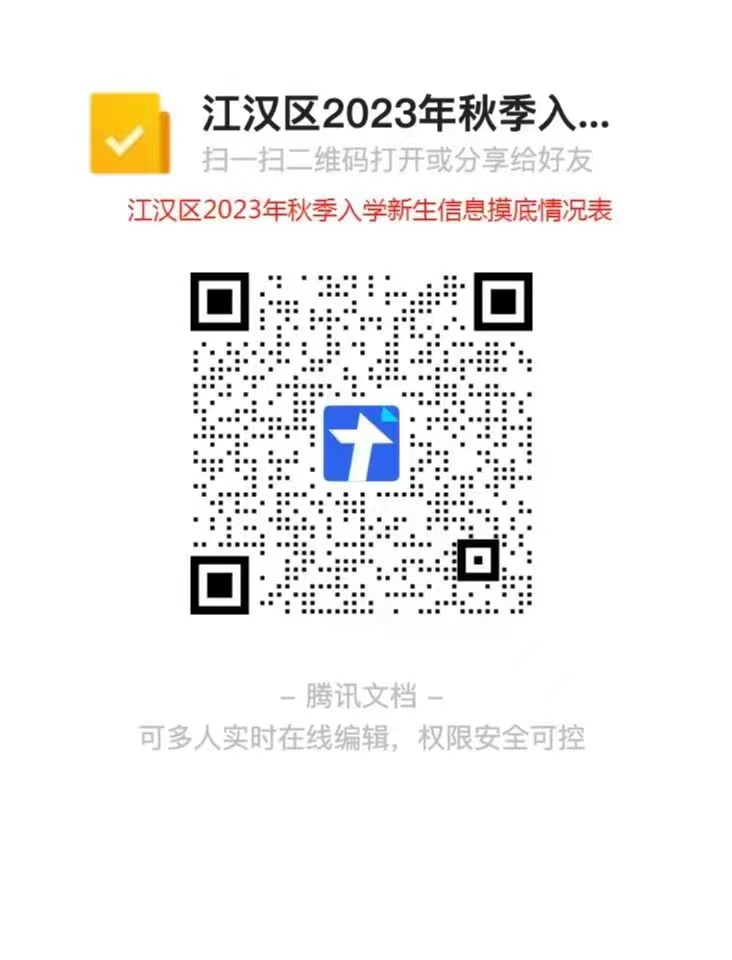 通知:为做好2023年小学新生入学服务范围划片工作,快速掌握小学新生入学信息,精准、合理进行小学新生入学服务范围划片工作,区教育局开发《江汉区2023年秋季入学新生信息摸底情况表》。