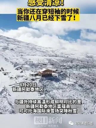 小华:我们的国家真的很大。新疆阿勒泰地区的许多山区开始下雪,这是秋天以来的首次降雪。