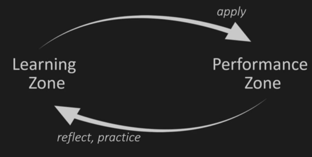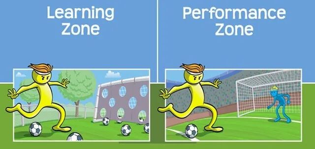In the performance zone, our goal is to do something as best as we can. We focus on what we already know and minimize mistakes. 在展现区,我们的目标是尽力做某事。我们聚焦于我们已知的学习内容,并将错误最小化。