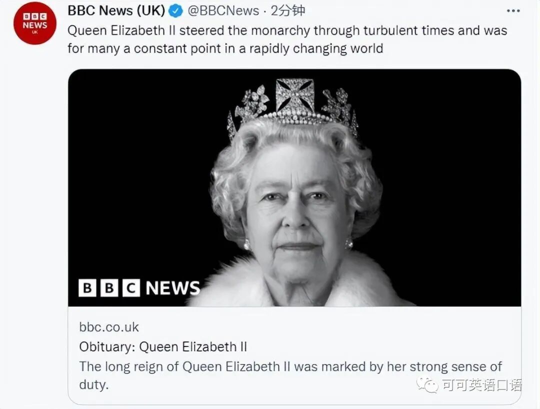 小红:爆炸性新闻!英国女王伊丽莎白二世于周四下午去世,享年96岁。
