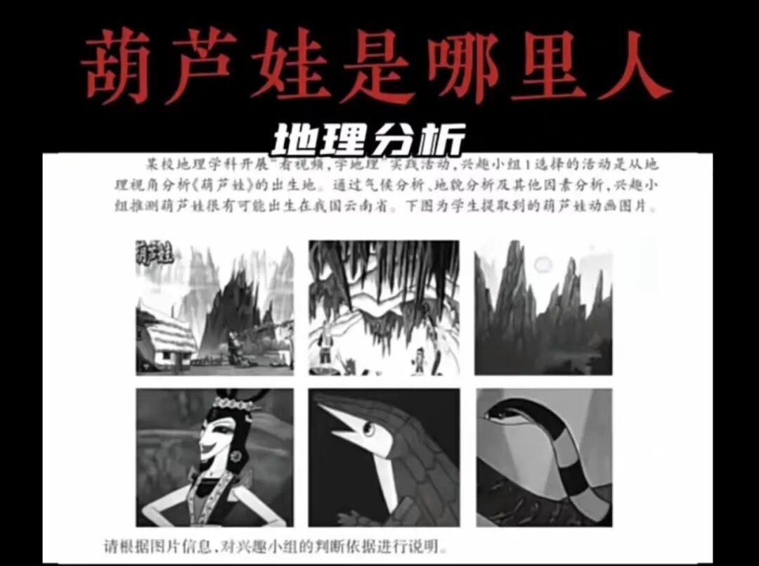 浙江省某次高中地理统考题问:某校地理学科开展“看视频,学地理”实践活动,兴趣小组1选择的活动是从地理视角分析《葫芦娃》的出生地。通过气候分析、地貌分析以及其他因素分析,兴趣小组推测葫芦娃很有可能出生在我国云南省,下图为学生提取到的葫芦娃动画图片。请根据图片信息,对兴趣小组的判断依据进行说明。今天我就带你走进关于这道题的英文版的解析。