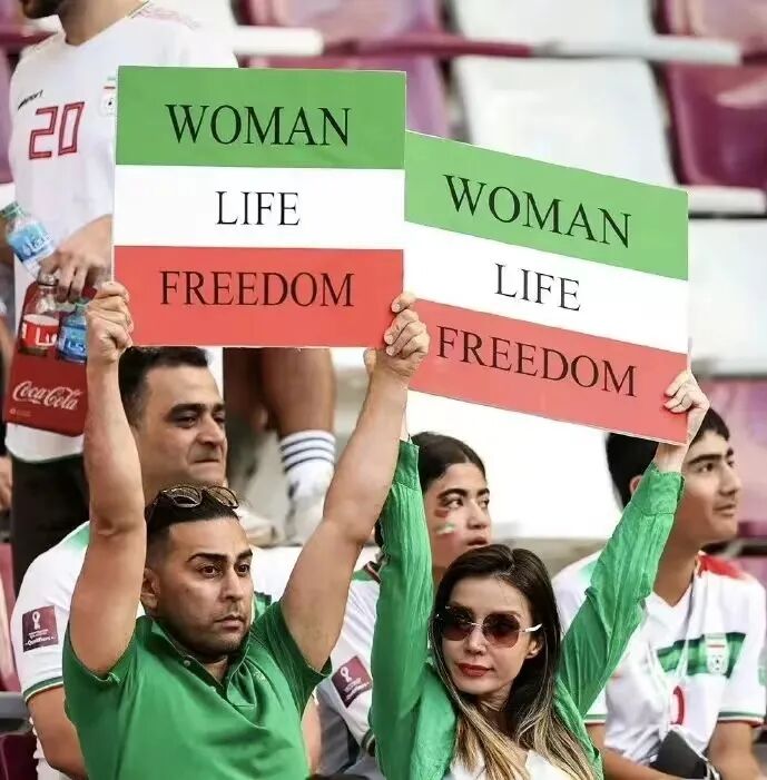 Xiaohong:Well, I read this piece of news this morning that one group of Iran fans produced a flag in the stands which read "Women, Life, Freedom".