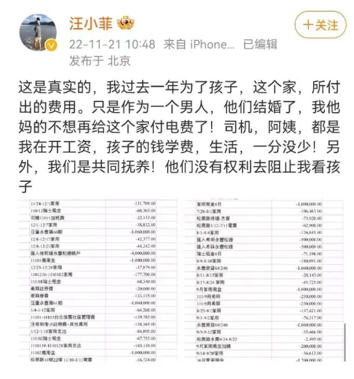 汪小菲和徐熙媛的“撕斗”最近愈演愈烈。汪小菲在微博上疯狂发帖,反对前妻的连续文章。随后,汪小菲通过律师发表声明澄清了一些问题。最有趣的是他不愿意付家庭费用和电费。
