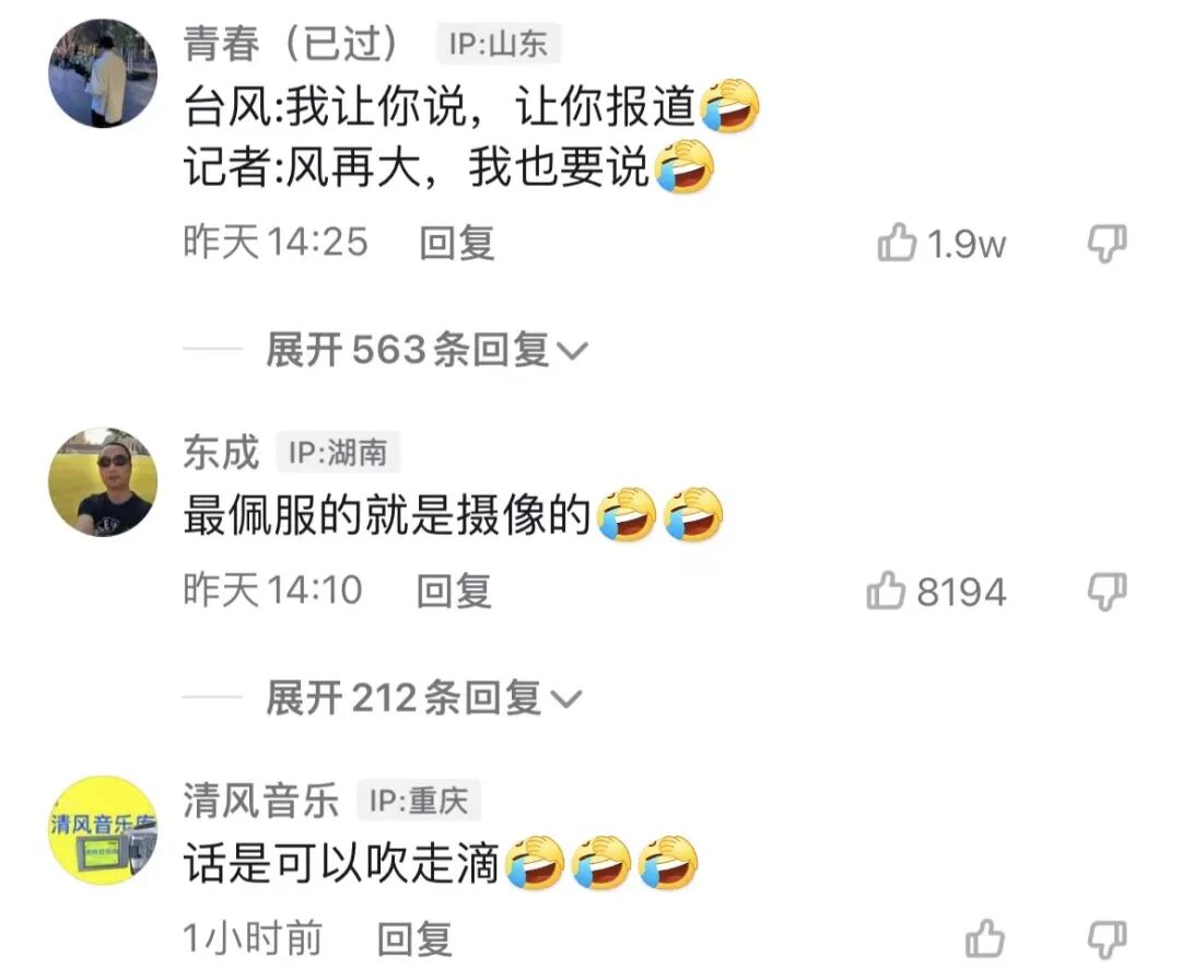 你看,一名女记者在台风“暹芭”期间与强风和大雨搏斗。社交媒体对台风“暹芭”引发的大量疯狂报道做出了反应,许多人认为报道策略“不必要”,“危及生命”。