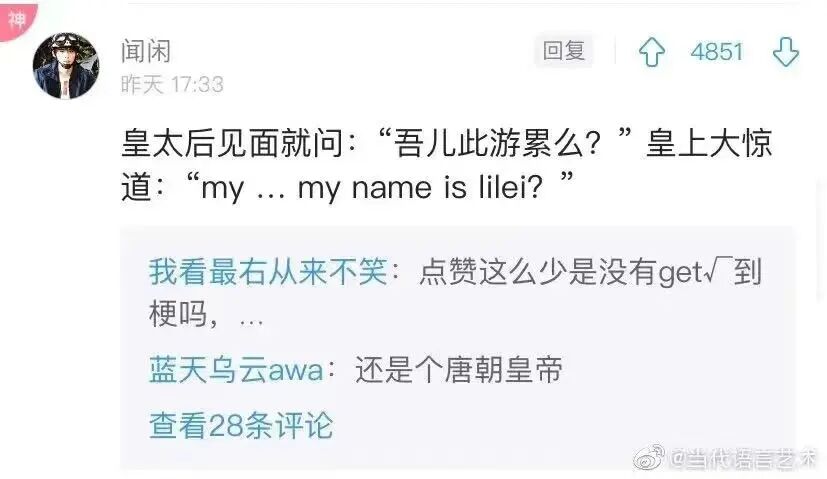 Xiaohua:Are you kidding me? I have another story to tell. If your future child's name is Wan Tusirui, what English name do you want your child to have?