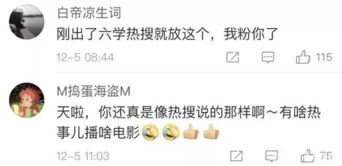 "You can always trust the six princesses /the Sixth Princess", netizens wrote. She keeps up with current events, and often borrows the name of the movie to adapt to changes. Before the Hong Kong independence activists made trouble, the film "I Am Your Mother" was vivid; during the epidemic, when American politicians demanded compensation from China for the losses caused by the Covid-19, "Ah, Friends Pay Back" was extremely ironic.
