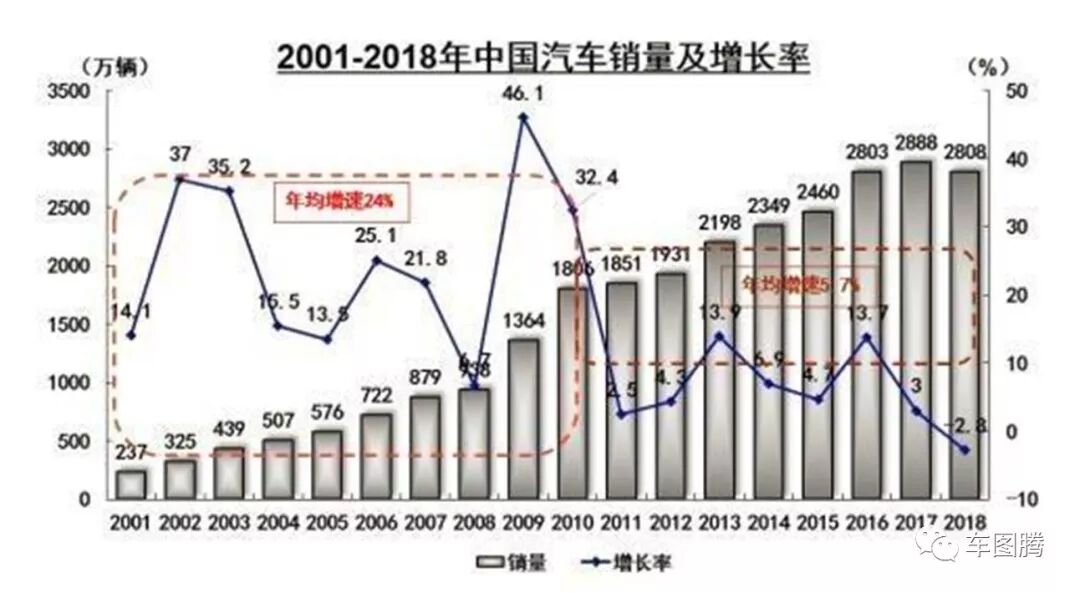 而中国汽车市场经过2009、2010年以后,正式进入微增长的“新常态”——在这之前行业年均增长率是24%,在这之后一落至5.7%。