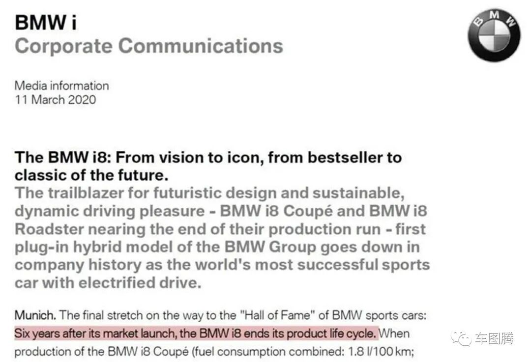 3月11日,宝马汽车宣布,插电式混合动力跑车i8将于2020年4月中旬正式停产。