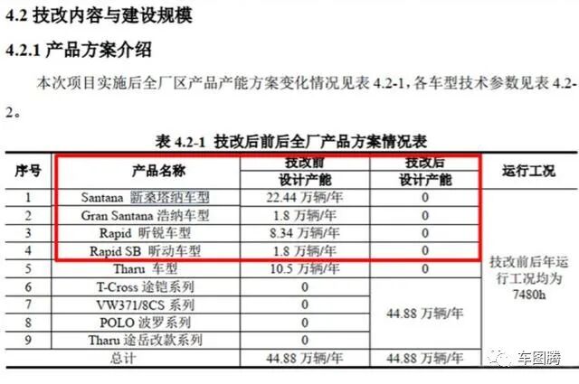 日前,上汽大众仪征分公司的一份环评资料显示,该厂将于2022-2023年完成车型技术改造项目,主要是优化工厂产品结构,即停产大众桑塔纳、浩纳、斯柯达昕锐、昕动等4款车型,转而投产中期改款途岳、换代凌渡、Polo和途铠。