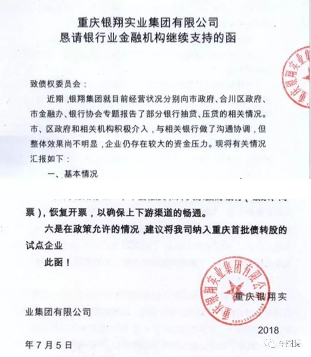 当时业内传出了一份北汽银翔大股东——重庆银翔实业的“求救函”,函中提到,重庆银翔集团的贷款项目遭遇银行“压贷抽贷”,2017-2018年累计达10多亿元,进而使其面临了巨大的资金压力,银翔集团也因此向债权委员会发函求救。