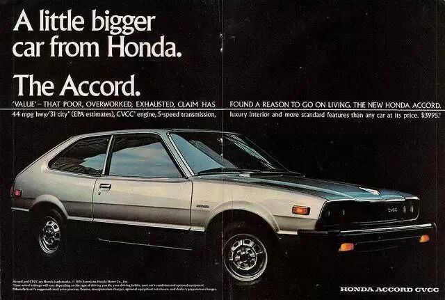 上世纪七八十年代,受石油危机影响,日本车企开始研发更小、更轻,更省油的经济型轿车。1972年10月,搭载本田CVCC发动机的第一代思域面世,并于1974年率先通过了美国当时最严苛的“马斯基法案”。之后到了1976年5月,第一代雅阁上市。