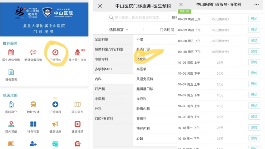 第一步:复旦中山医院公众号进行挂号