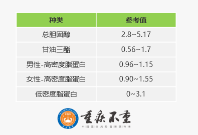 血脂一般参考值(mmol/L)