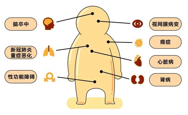 患病之后,特别是病情长期得不到控制的糖尿病患者,身体会变得千疮百孔、非常脆弱,不仅更容易得视网膜病变、肾脏衰竭(进而发展为尿毒症)、糖尿病足以及心脑血管(如心衰、心肌梗死、脑卒中等)、性功能障碍、癌症,就连尚未消停下来的新冠肺炎,也是糖尿病患者更容易成为重症、甚至死亡。