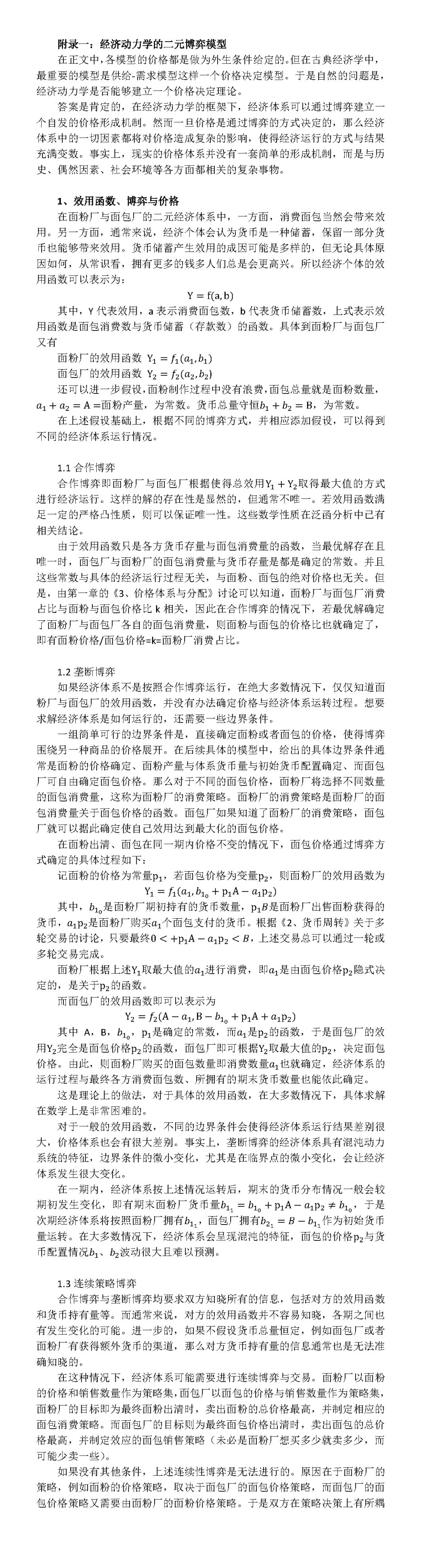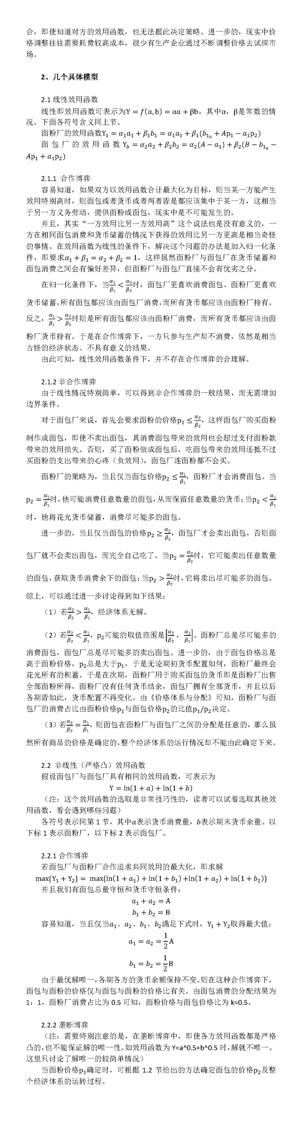 1、博弈情况下的价格确定是一个极其复杂的过程,这是为什么正文中的价格都是作为外生条件直接给出的根本原因。