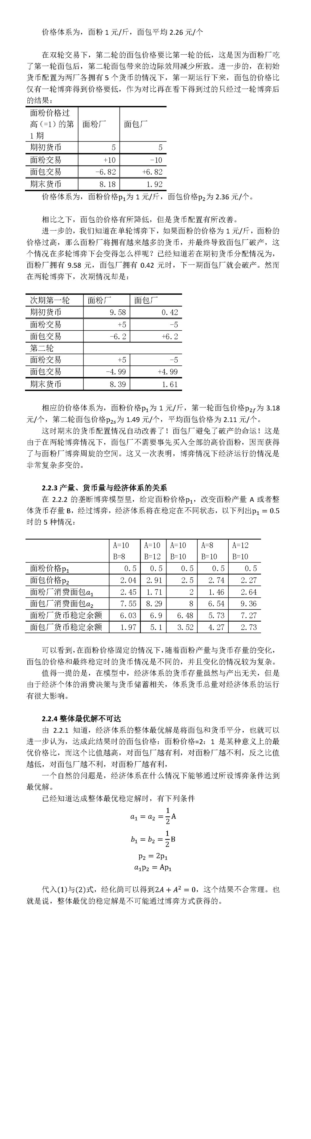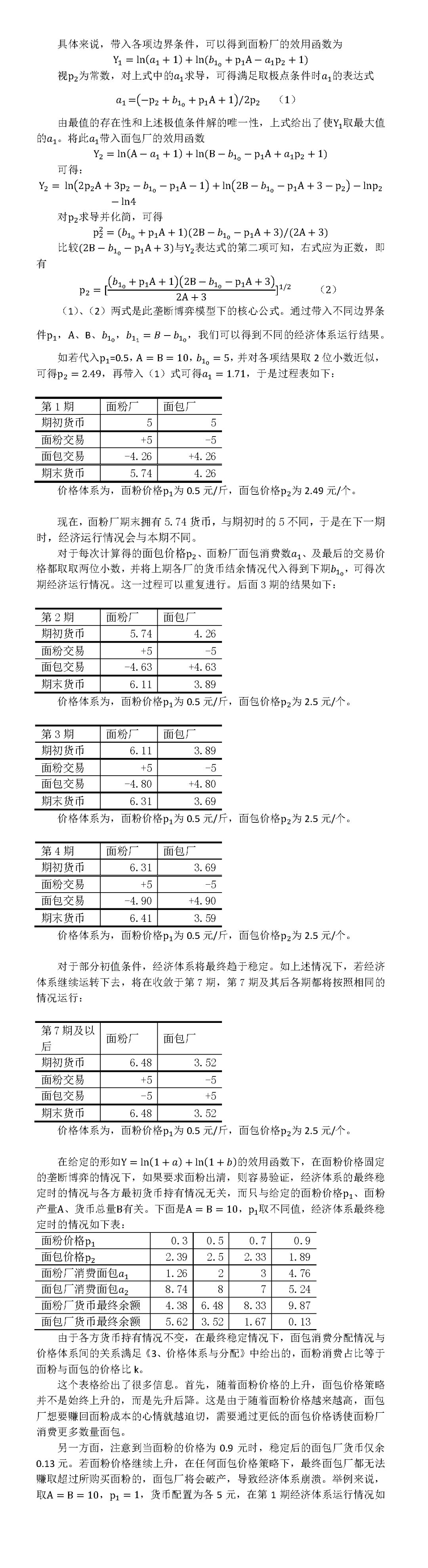 2、不同的边值条件可以带来很大的结果上的不同,不同面粉价格、不同的货币存量、不同的产出水平,都可以引起经济体系巨大变化。甚至于,是否存在价格调整机制、同一期内的交易通过不同轮次展开,也可以的不同经济运行结果。应该说,经济体系的运行时非常微妙的。