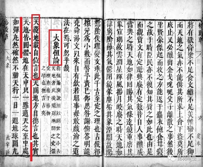 大象恒论:天覆地载,自位言也;天圆地方,自德言也。其实天地皆圆体,地在天中只是一点。