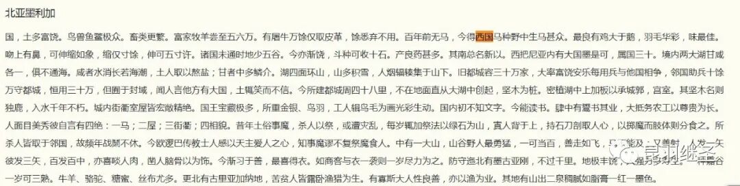 今亦渐饶,斗种可收十石。产良药甚多。其南总名新以。西把尼亚内有大国墨是可,属国三十。