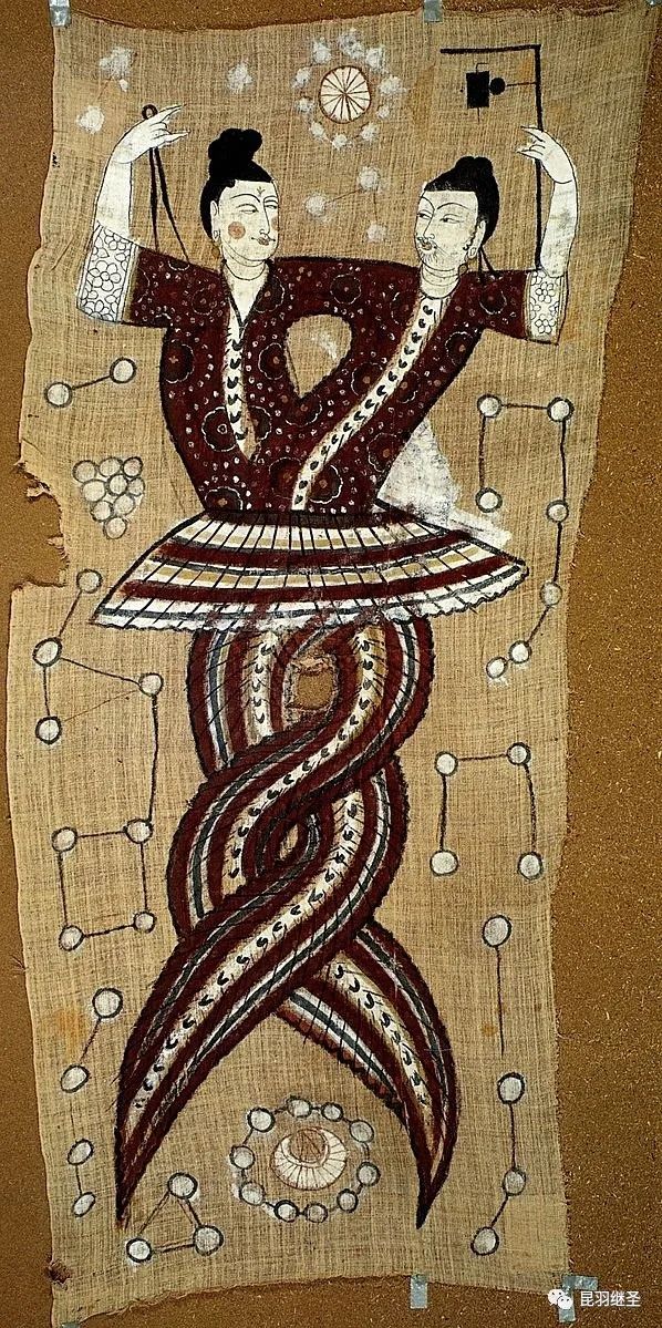 伏羲女娲图,注意看背后的星辰。男左女右,亦有天文意义