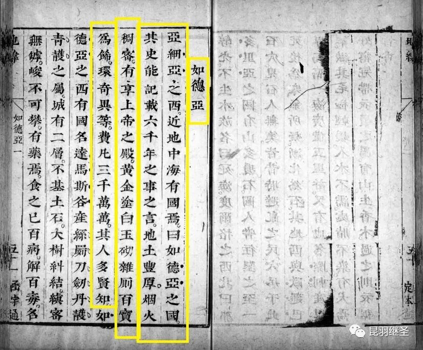 明代天启年间版《职方外纪》中记述的如德亚,足足有四页,光从字数上看,就翻了好几倍。