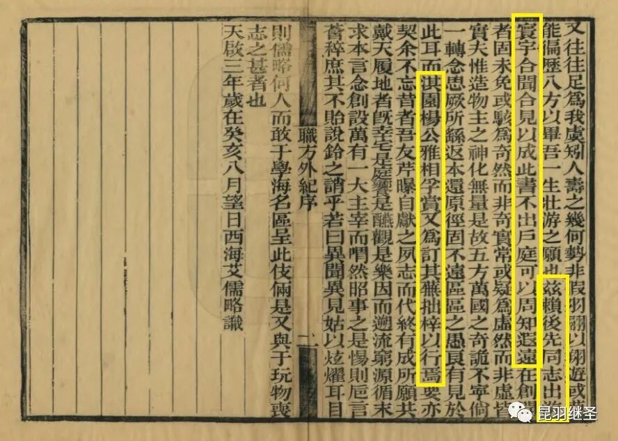 为了让自己的成书时间比《函宇通》更早,艾儒略故意将时间提前,定为天启三年(即1623年),这样就能比《函宇通》中的“地纬”早一年,真是费尽心机。