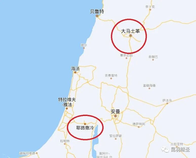 等等,大马士革(达马斯谷)怎么会在如德亚(今犹大国)西面?西面不是大海吗?