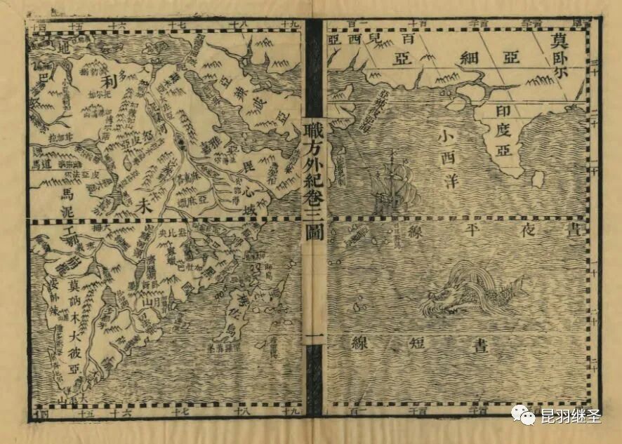 需要指出的是,1623版的《职方外纪》每卷前面都没有所谓的舆图,但是1844版《职方外纪》却在每一卷开头加入了一幅精美的地图,真是令人五味杂陈。