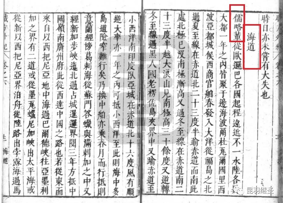1844年版《职方外纪》,海舶志过后,最后一部分是“海道”。内容与《函宇通》差不多,只是替换了主角、想方设法剔除了中国元素。