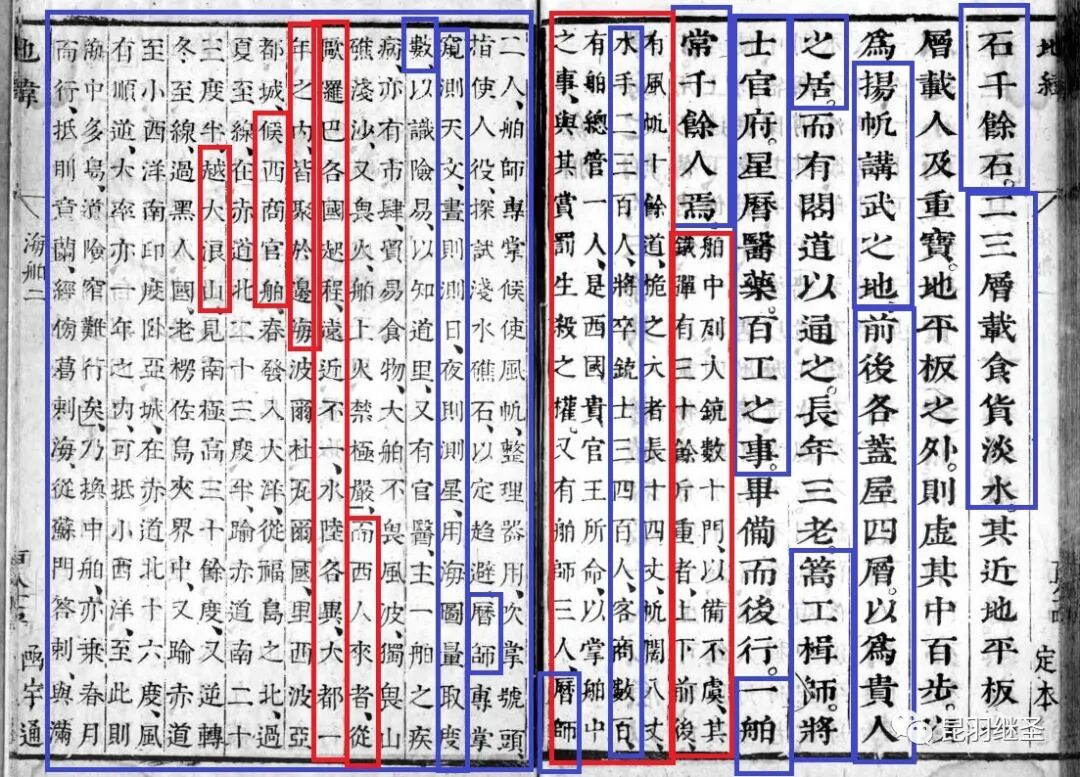 长年三老,篙工楫师、将士官府、星历医药。百工之事,毕备而后行。一舶常千余人焉。(注意,此处也有中国元素,职方外纪中删除)