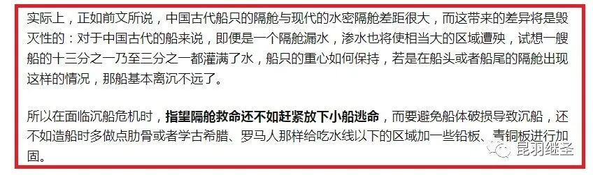 在《函宇通》面世、且被证实为中国资料以前,他们是这样肆无忌惮地诋毁中国的水密舱技术的: