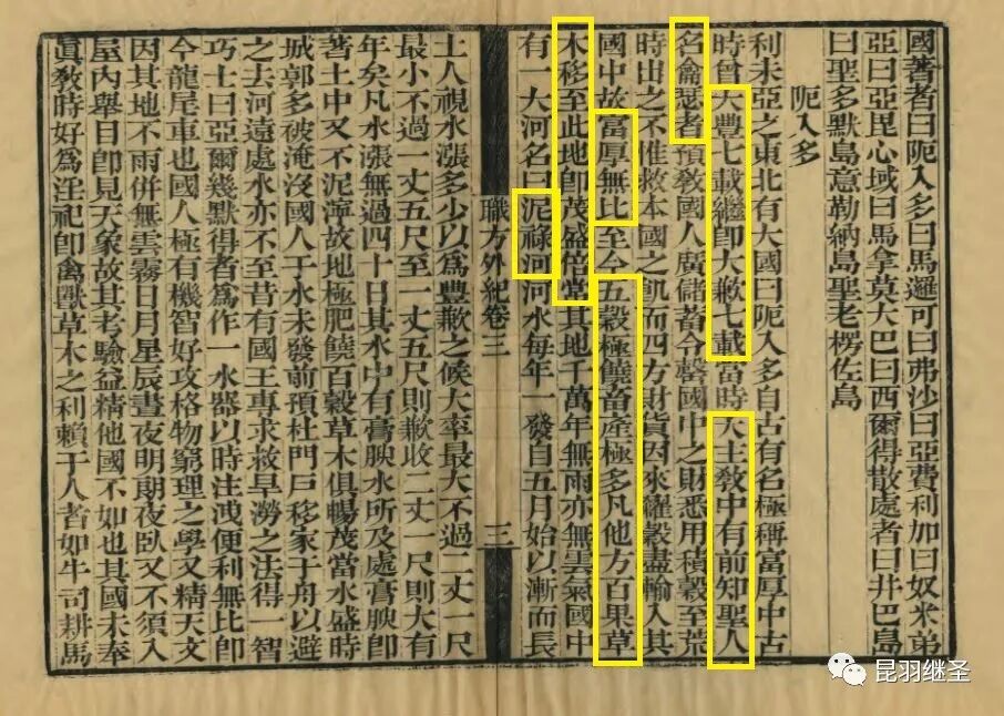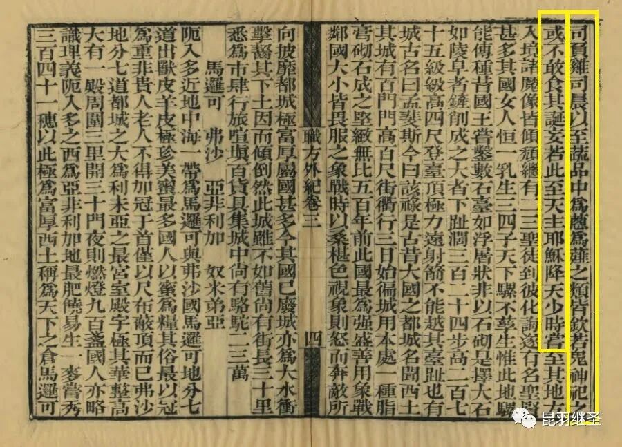 好了,看过19世纪的书是如何记述的,再来看看《职方外纪》。《职方外纪》中是这么记载的: