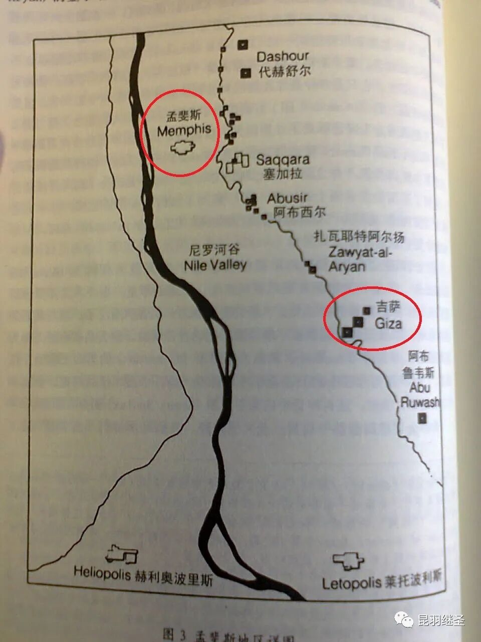 按照现行的西史,古都孟菲斯遗址位于埃及尼罗河三角洲南端,距开罗西南大约30公里。吉萨金字塔位于孟菲斯、开罗附近,却在二者之间,说明两个城市并不相同。所以,孟菲斯肯定不是开罗的前身。