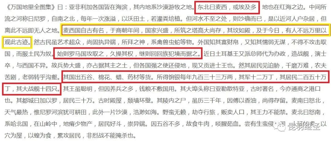 有点遗憾,《函宇通》中有关阨入多(埃及)的志录也明显被人篡改了,而修改后的内容,大体与《职方外纪》相同,只是略有差异。