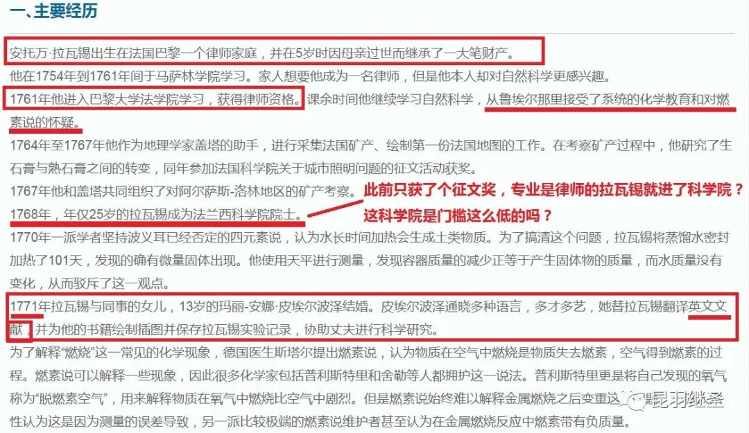 注意,拉瓦锡同学原本所学专业是律师,毕业后却于1768年、25岁就成了法兰西科学院院士。此前,他几乎没有任何成就、没有任何贡献,相关专业领域的论文也没有,居然就成了科学院院士。当时的科学院,门槛是这么低吗?谁都能进?
