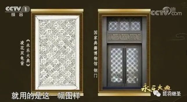 国家典籍博物馆有一扇“凌花双龟背”纹样的铜门,大门上的纹样设计灵感便出自《永乐大典》“真”字部之“门”字册,由国内著名非遗大师朱炳仁先生操刀。