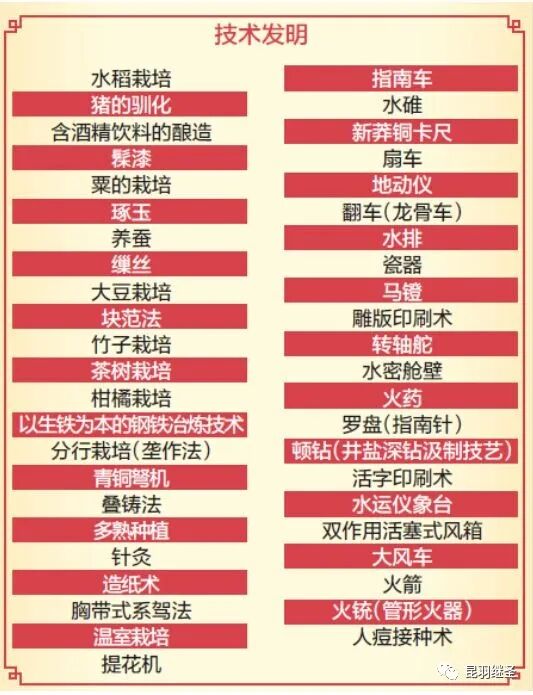 如果按类型来分,则可分为“”科学发现与创造”、“技术发明”、“工程成就”三类,如下所示(图源:莉莎)。