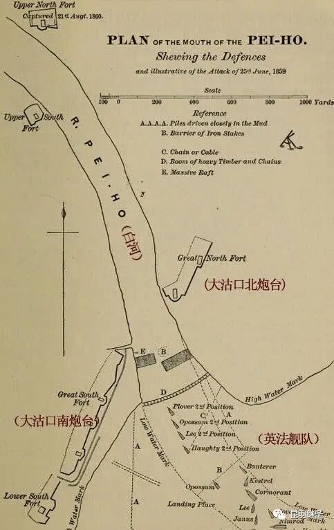 那是6月25日,在白河河口,我们去北京签订条约的途中(译注:英法联军当时拒绝按清政府指定路线前往北京,而是在舰队保护下直闯禁止外国船只进入的大沽口),他们从炮台向我们开火,我们从炮艇上还击。