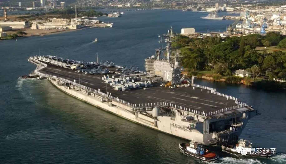 里根号航母,十万吨左右,尼米兹级9号舰,属于米国第二代核动力航母,誉满全球。尼米兹级航母自上世纪九十年代开始建造,总共十艘,共分三个批次建造完成,前后历时30多年。