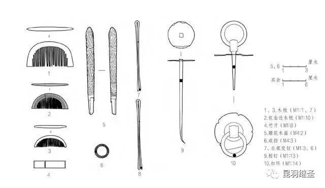 “七寸墨漆画金带梳具一盒,金错镜、丹缣衣自副。”