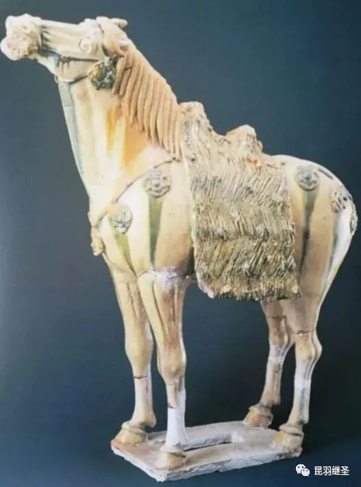 下图所示,为蓝天吕氏墓地中出土的明器三彩马。所谓明器,就是人类现实生活中实用物件的仿制品,包括生活用具,以及一些仿制人形的俑类。
