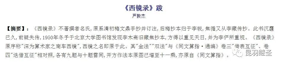 具体详见纪志刚先生的期刊文章《严敦杰与〈欧罗巴镜西录〉》:
