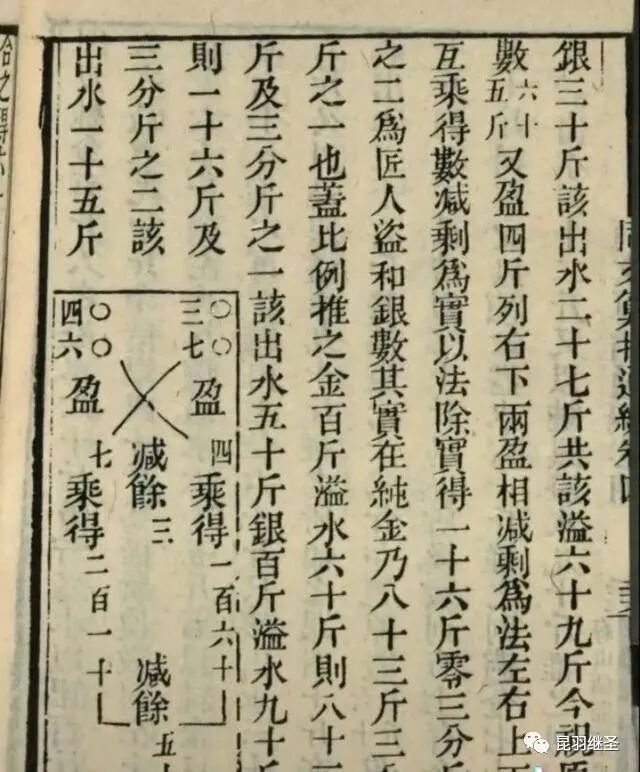 金法即《九章》之衰分,双法即《九章》之盈不足也……(被清朝时的行家瞧出问题来了吧?什么金法,不就是来自于中国的《九章》么?)