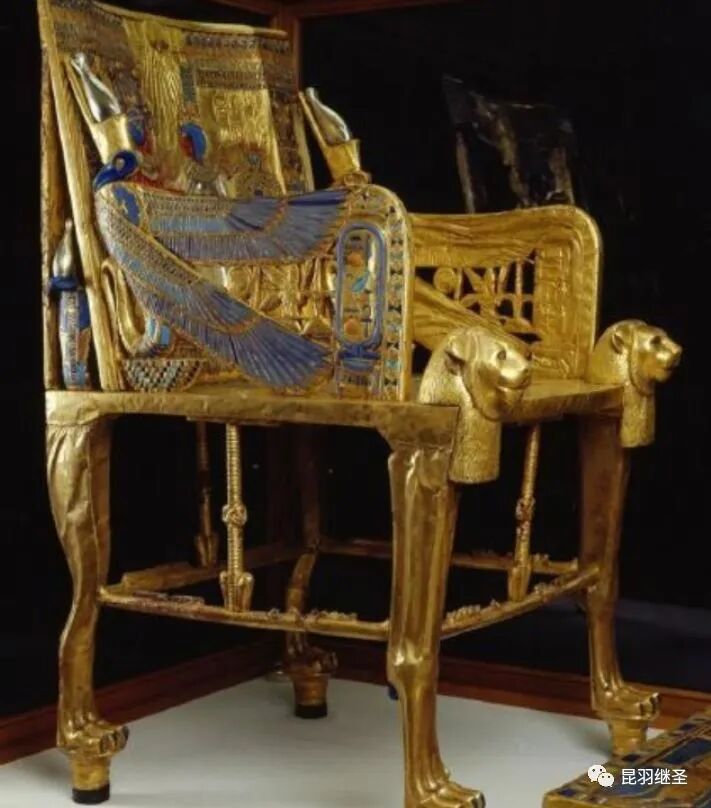 目前的考古证据表明,古埃及人是最早使用椅子的民族。图为图坦卡蒙金干座。这把配有脚踏的金王座(椅子),与现代椅子没有本质区别。”