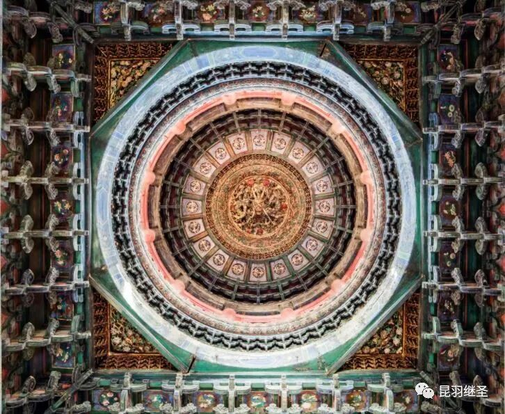 天花是华夏古代建筑中的重要组成部分,彩绘各种纹样,彰显华贵,十分精美。