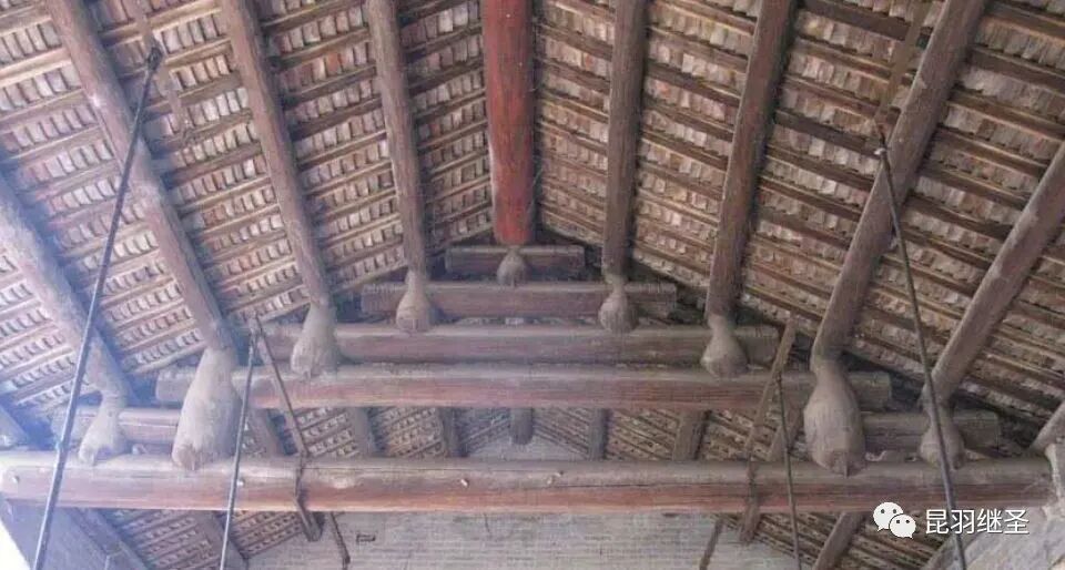 对比一下华夏的建筑,那人字形屋顶下横着的一根根椽木像不像?