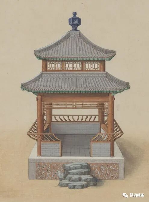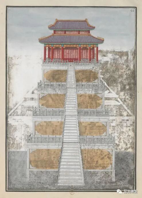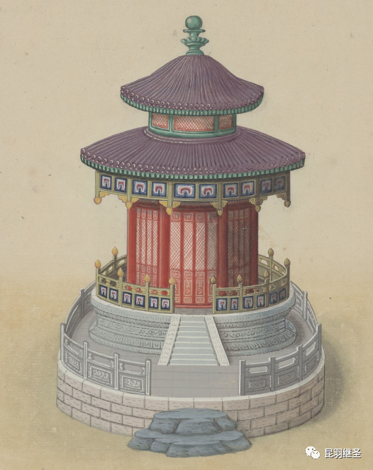 此书是一本介绍中国建筑的画谱手稿,全彩手绘的,写真度极高,作者是姓名、履历已不可考,为法国彩印图书,现存于法国国家图书馆。